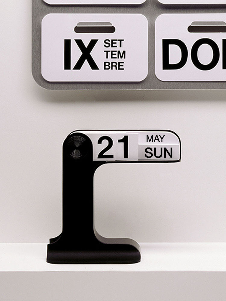 1967年、Enzo Mari(エンツォ・マリ)によってデザインされた、イタリアンモダンデザインの象徴とも言える万年カレンダーです。