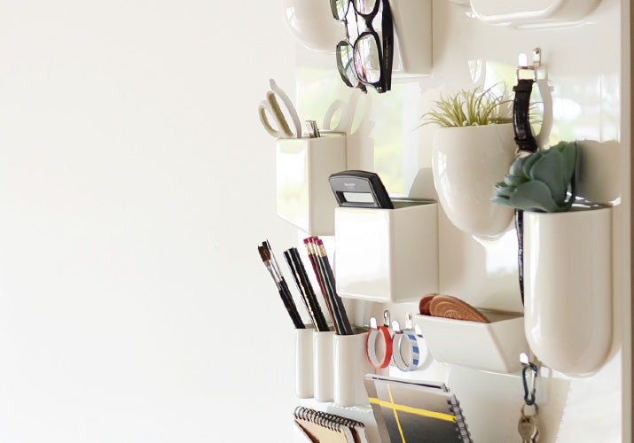 By attaching it to the wall, you can organize and keep cluttered places such as your home or office neat and tidy. With metal hooks and pockets of various shapes, you can easily find everyday items and store them beautifully. The impression changes depending on what you store inside, and it becomes like an ornament that decorates the wall.
